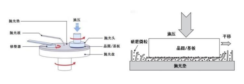 CMP, or Chemical Mechanical Polishing, is a process that uses chemical etching and mechanical force to planarize silicon wafers or other substrate materials during manufacturing. The equipment comprises three main modules: polishing, cleaning, and transfer. During the process, the polishing head presses the wafer surface to be polished against a rough polishing pad, achieving global planarization through coupling via the etching of the polishing slurry, particle friction, and friction from the polishing pad. Modern integrated circuit components generally employ multi-layered, three-dimensional wiring, thus requiring multiple cycles in the front-end processes of integrated circuit manufacturing. In this process, CMP technology is a key process for achieving wafer surface planarization in integrated circuit (chip) manufacturing and a crucial step in advancing process technology nodes in integrated circuit manufacturing.